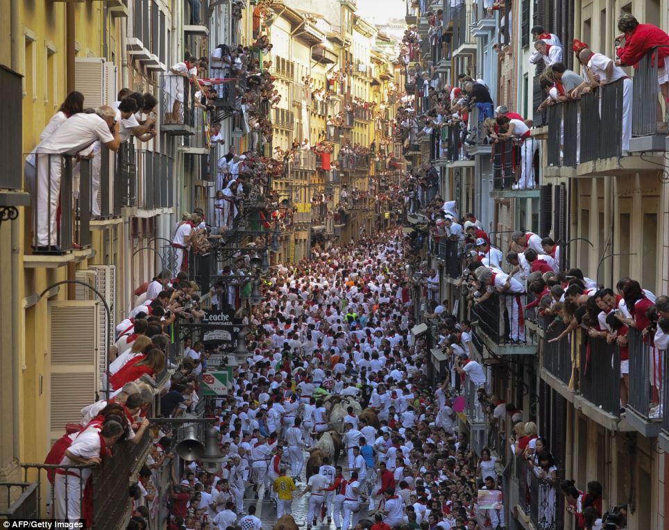 स्पेनको पाम्पलोना सहरमा आयोजित साँढे दौडको वाषिर्क पर्व सान फर्मिनका अवसरमा हजारौँ मानिस ज्यानको परवाह नगरी सहभागी भए ।