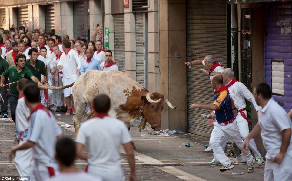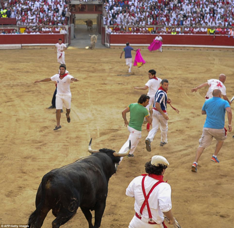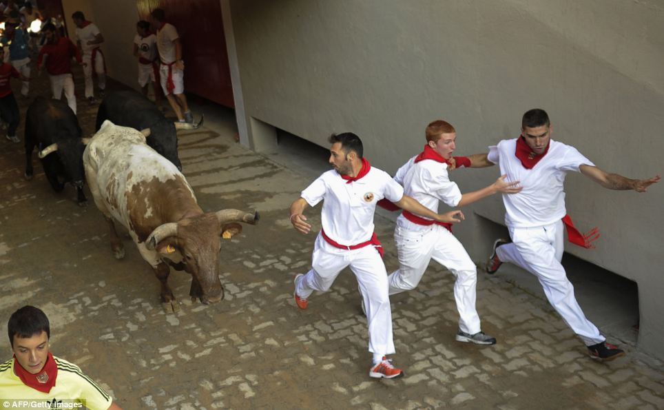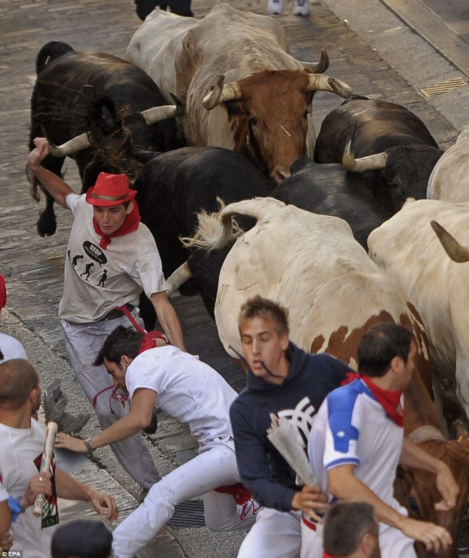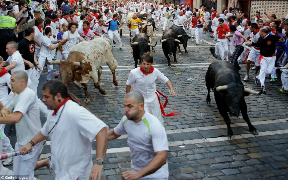 साँढे दौड पर्वमा निकै हिंश्रक देखिने तिखा र लामा सिंग भएका साँढेहरुलाई जिस्काउँदै दौडाइयो । त्यस क्रममा साँढेले उधिनेर ४ जना मानिस घाइते पनि भए । ९ दिने पर्वको पहिलो दिन ६ वटा साँढेहरु दौडाइएका थिए । ती साँढेहरुलाई बिच्किन नदिन घण्टीवाल साँढे नियन्त्रकहरु पनि खटिएका थिए । साँढे दौडमा साँढेसँगै जिस्किने जोखिम मोल्नका लागि स्पेनी मात्र नभएर विदेशीहरु समेत सरिक भए ।