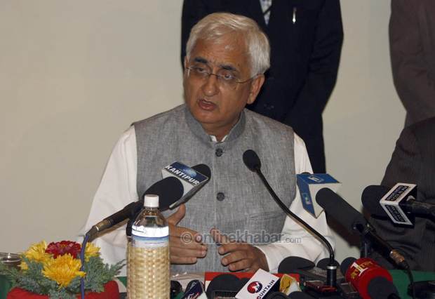 भारतीय विदेशमन्त्री एसएम कृष्णाले सन् २०११ अपि्रलमा गरेको नेपाल भ्रमणपछिको खुर्शिदको यो पछिल्लो विदेशमन्त्रीस्तरीय भ्रमण थियो । यो भ्रमणमा खुर्शिदले आफ्ना समकक्षी माधवप्रसाद घिमिरेसँग नेपाल र भारतवीच आफ्नो द्वीपक्षीय सम्बन्ध र विकासबारे आफ्ना विचार आदान-प्रदान गर्ने भारतीय दूतावासले जनाएको थियो ।