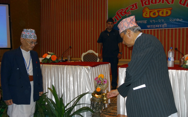 मन्त्रिपरिषद्का अध्यक्ष रेग्मीले बैठकको उद्घाटन गर्दै सबै विमतिलाई थाँती राखी अगामी दस वर्षभित्रमा नेपाललाई विकासशील राष्ट्रमा स्तरोन्नति गर्ने लक्ष्यलाई पूरा गर्न इमान्दारीतापूर्वक लाग्न सबैसँग आग्रह गर्नुभयो । उहाँले भन्नुभयो- “नेपाललाई विकासशील राष्ट्रमा स्तरोन्नति गर्न सम्भव छ, यसका तीनवटा सूचकमध्ये एउटा हासिल भइसकेको पनि छ, बाँकी कार्य पूरा गर्न हामीले सबै विमतिहरुलाई थाँती राखी अगाडि बढ्नु आवश्यक छ ।”