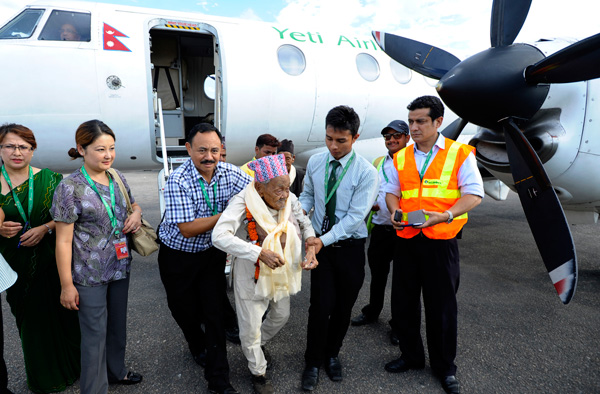 ४ भदौ, काठमाडौं । निजी क्षेत्रको वायुसेवा यति एयरलाइन्सले धनकुटाका १०६ वर्षीय बोटे राईको जहाज चढ्ने धोको पुरा गरिदिएको छ । धनकुटाका स्थायी बासिन्दा राईले आइतबार मर्नुभन्दा अगाडी चरा झैं आकाशमा उड्ने रहर भएको बताउनुभएको थियो ।